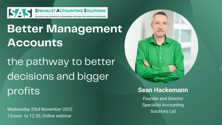 Sean Hackemann has been a Chartered Accountant for over 15 years and has gained extensive experience in leading finance departments of SMEs, advisory and corporate finance. Sean is director and founder of Specialist Accounting Solutions Ltd and strongly believes that better Management Information helps business owners and managers make better decisions, which ultimately leads to more profitable businesses.