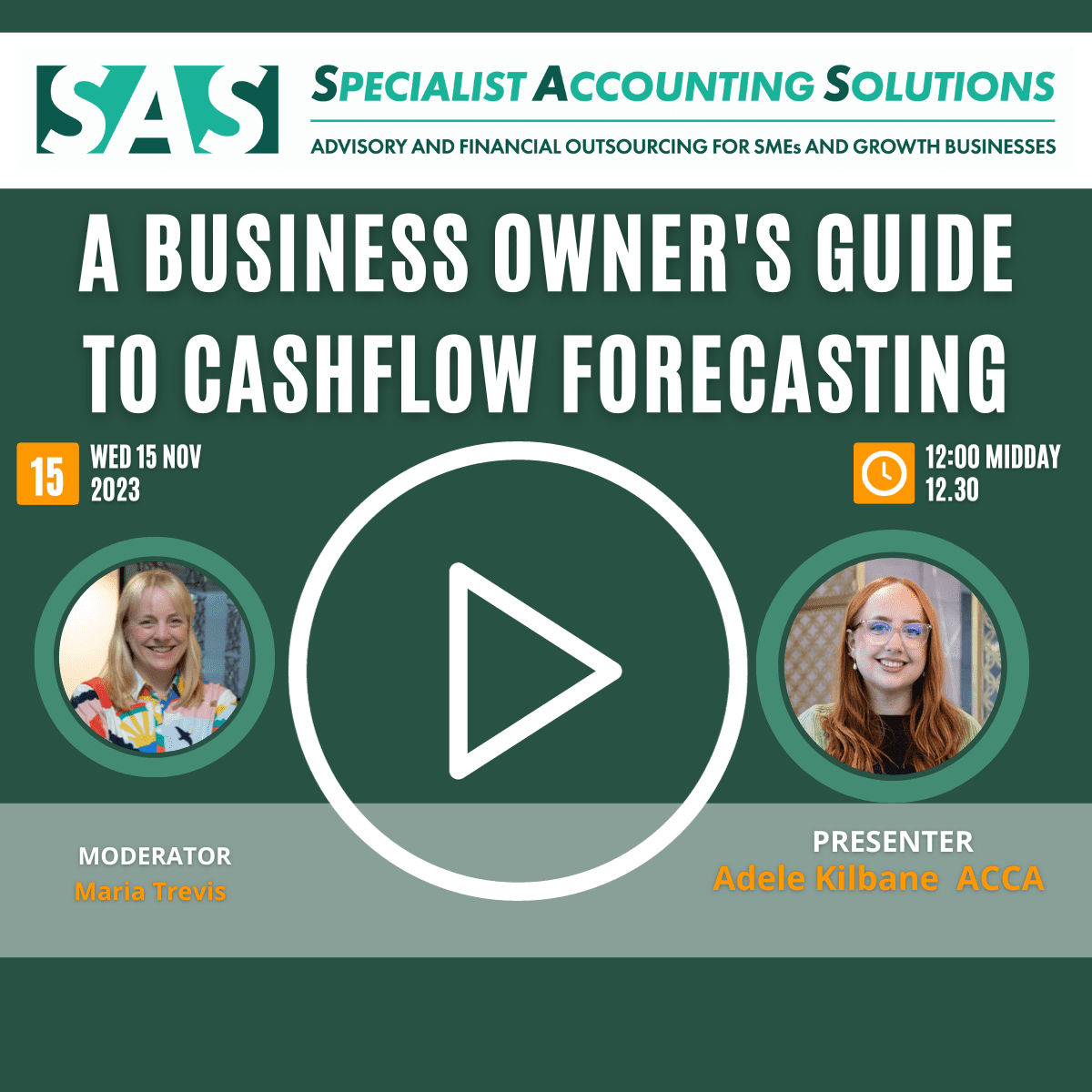 If you could not join us for our lunchtime webinar you can playback the recording on the image link below. Watch our colleague Adele Kilbane (ACCA) share insight to business owners on how to get to grips with cashflow forecasting. Duration of the webinar is less than 25 minutes.